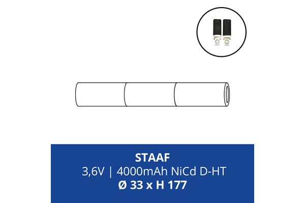 - accupack 3.6V 4000mAh NiCd D HT staaf faston 4,8 mm